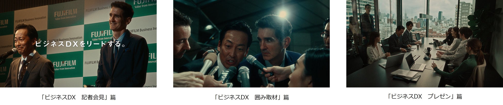 富士フイルムビジネスイノベーション株式会社(本社:東京都港区、代表取締役社長・CEO:浜 直樹)は、ITソリューションを通じて企業の業務/情報プロセスなどビジネス領域に特化したDXを進める中、 富士フイルムブランドにおけるビジネスイノベーション事業の認知を深め、「富士フイルムビジネスイノベーションといえばDX!」のイメージ醸成を目指す新TVCMを、12月16日(金)より全国で順次放映いたします。今回のTVCMは、「ビジネスDX 記者会見」篇を皮切りに「ビジネスDX 囲み取材」篇、「ビジネスDX プレゼン」篇へと続くシリーズ3作品で構成します。