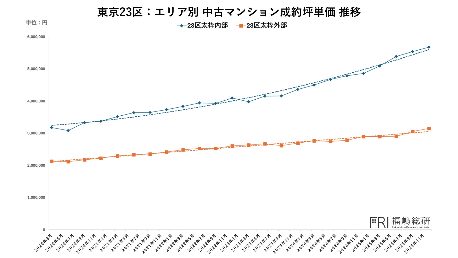 もっとも、この価格上昇は突発的なものではなく、これまでの上昇トレンドの延長線上に位置付けることが可能です。都心5区を中心とした高価格帯エリアにおける取引の増加と価格上昇が、首都圏全体の平均値を押し上げる構造は、すでに数年前から継続してきました。本稿では、単なる平均価格の上昇にとどまらず、その背後にある需給構造の変化や投資行動の実態について、より詳細に検証していきます。