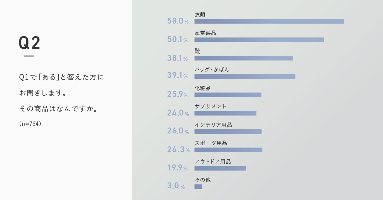 その商品は「衣服」がもっとも多く、58.0%という結果に。