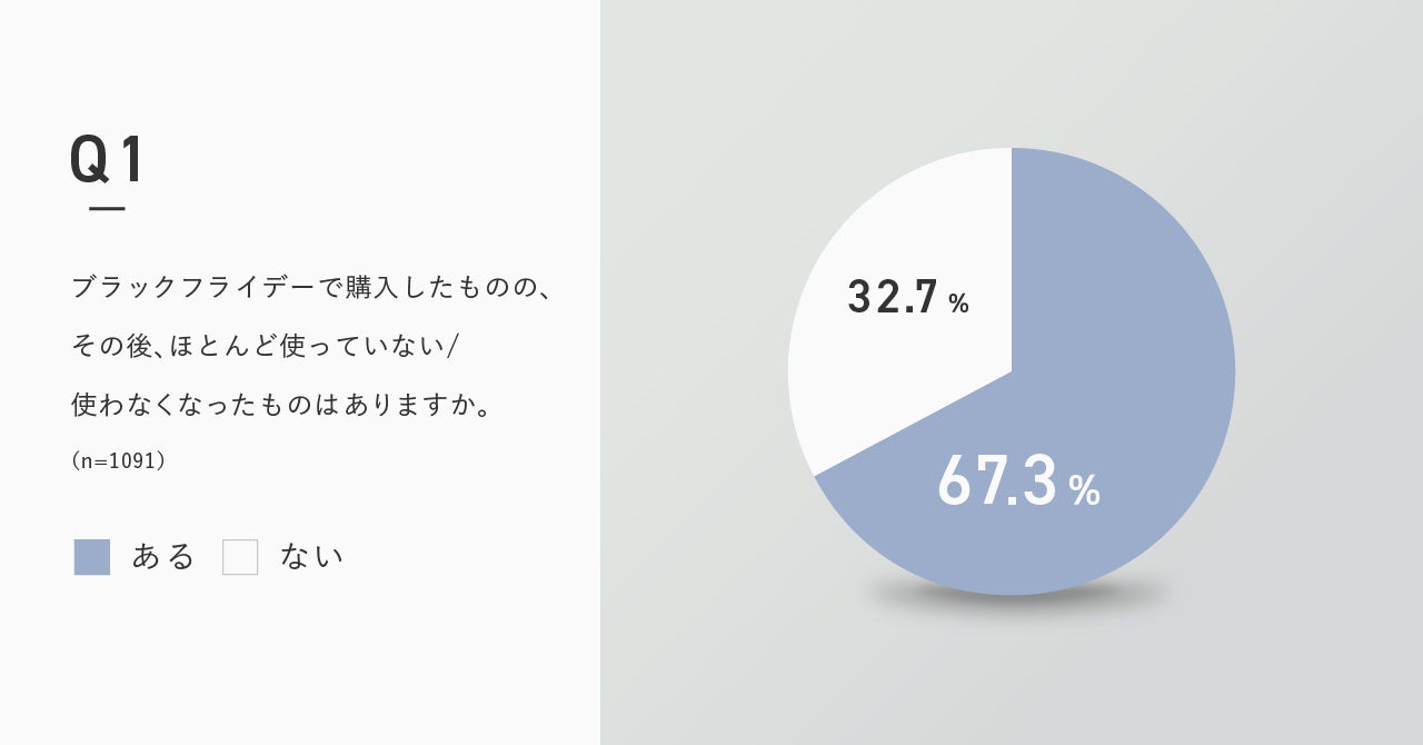 2022年に行った「買い物と衣服の廃棄についての調査」の結果、ブラックフライデーで購入したもののその後ほとんど使っていないものがあると回答した人は67.3%でした。