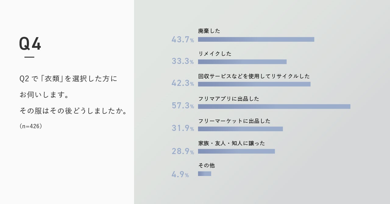 使わなくなった商品は、「衣服」が最多で、半数近くが「廃棄」されている