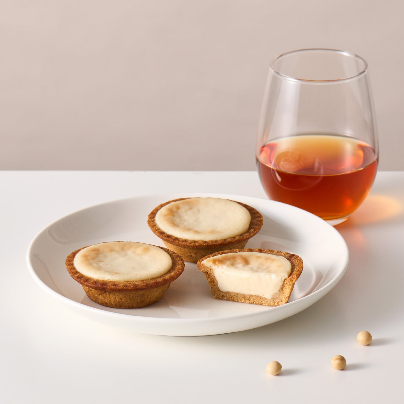 豆乳をはじめとする植物性原料を使った、チーズタルトみたいなSOYタルト。ムースには、豆乳特有の青臭さの少ないコクのある豆乳を原料として使用し、レモンペーストやバニラペーストを加えることでクリームチーズのような味わいのふわふわ滑らかな口触りを実現しました。てんさい糖を使うことで、ふんわり優しい甘さに仕上げたSOYタルトです。