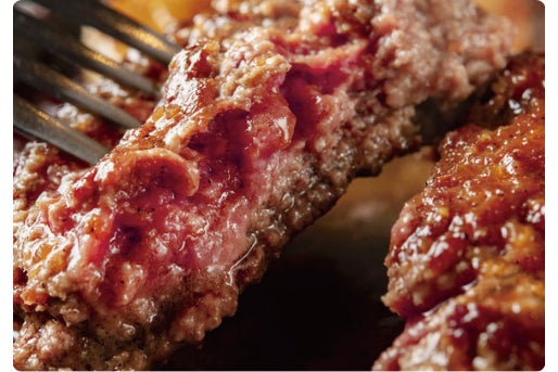熊本県産牧草あか牛と放牧豚と蝦夷鹿のハンバーグ 858 円(税込み)