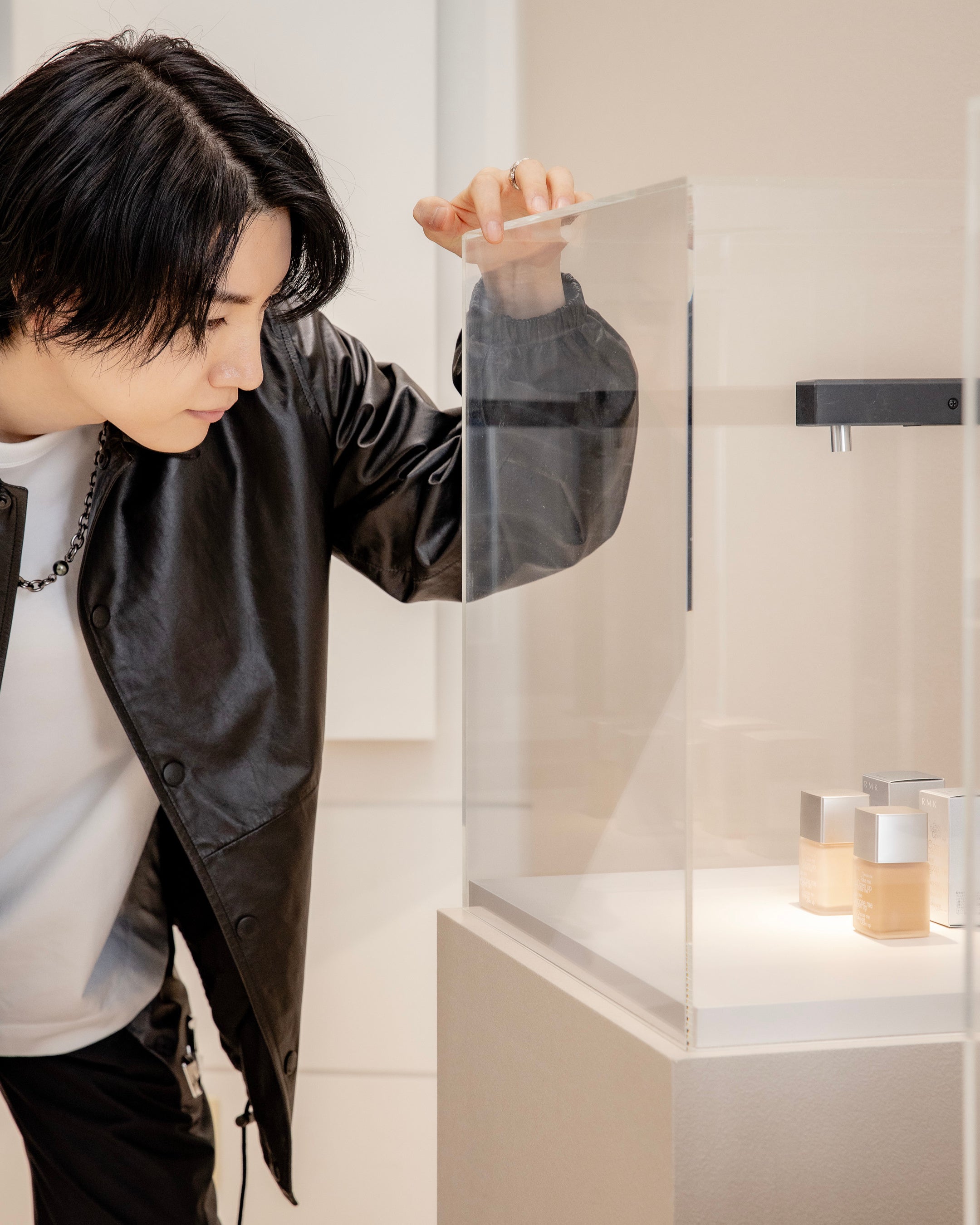 訪れた方たちは、25周年とともにアップデートされたRMKの世界観を堪能。レジェンダリーアイテム「RMK メイクアップベース」や「RMK リクイドファンデーション」の限定製品や、25周年を記念し登場する新リップスティック「RMK ザ リップカラー」(すべて3月4日発売)などを、限定ディスプレイと共に体験しました。
