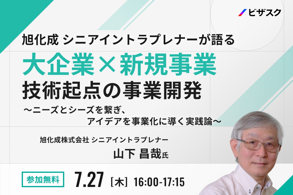 【7/27(木)16時】旭化成 シニアイントラプレナーが語る「大企業×新規事業 技術起点の事業開発 〜ニーズとシーズを繋ぎ、アイデアを事業化に導く実践論〜」無料オンラインセミナーを開催