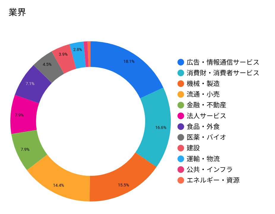 ■業界別では「情報通信」「消費者向けサービス」「製造・不動産」などが主力