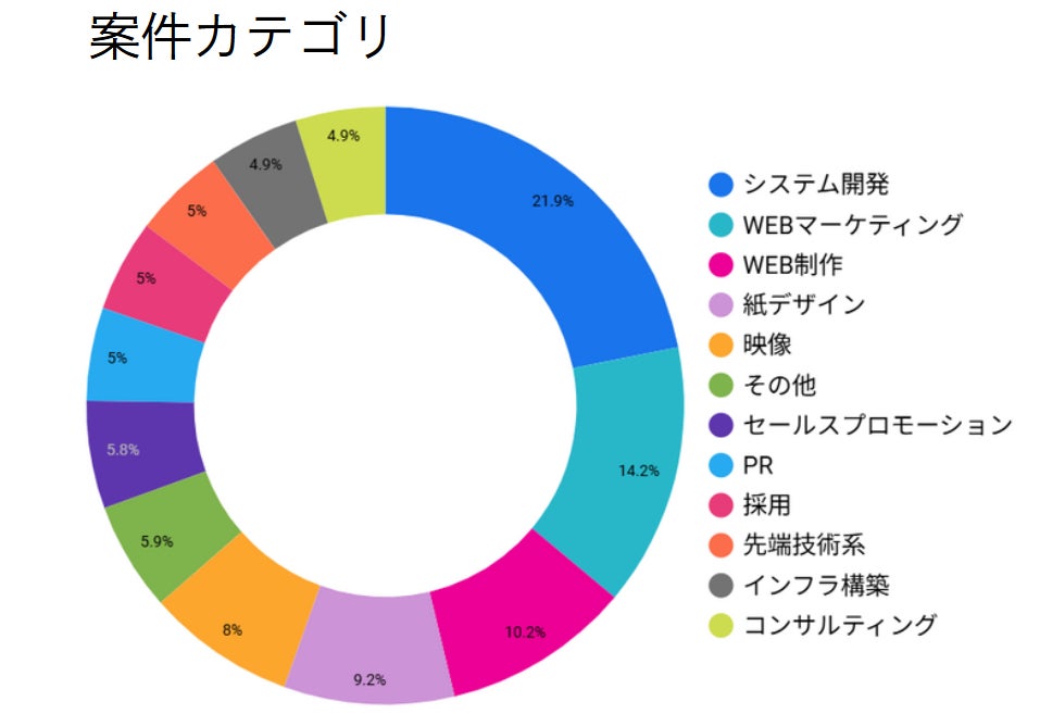 発注企業の業界別で見ると、「広告・情報通信サービス」「消費者向けサービス」「機械・製造」「業界からの相談が全体の約半数を占めました。これらの業界に共通しているのは、変化スピードの速さと専門外業務の外部化ニーズの高さだと考えられます。