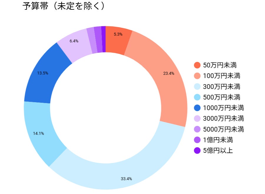 相談予算帯では「100万〜300万円未満」が最も多く(33.4%)、主流であることがわかりました。