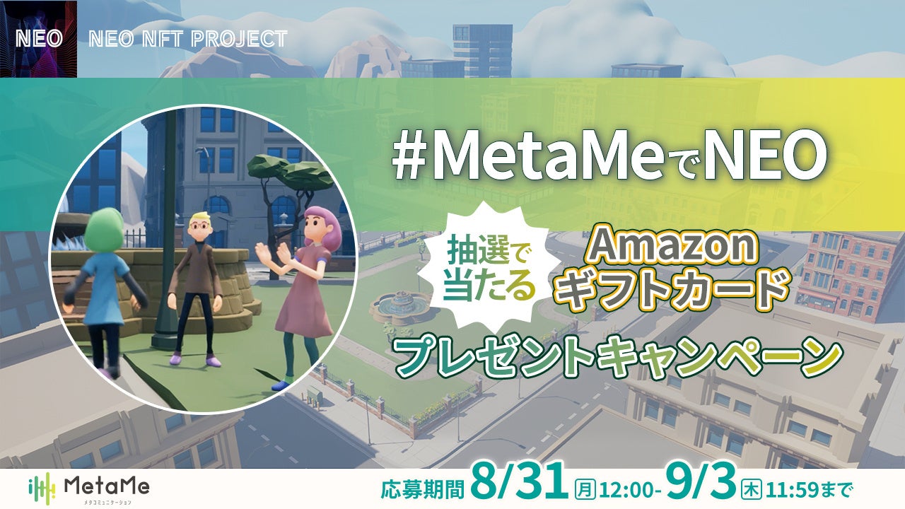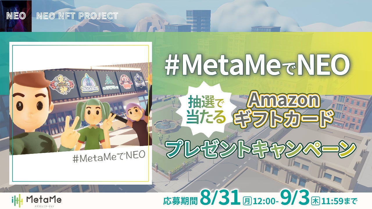 内容:フレンドとカフェ内のチームロゴ前に集まった画面をキャプチャ後、Twitter(X)でNEOとMetaMeの公式アカウントをフォローの上、「#MetaMeでNEO」のハッシュタグをつけてキャンペーン告知を引用リツイートすると、後日Amazon*3ギフト券を抽選で進呈します。