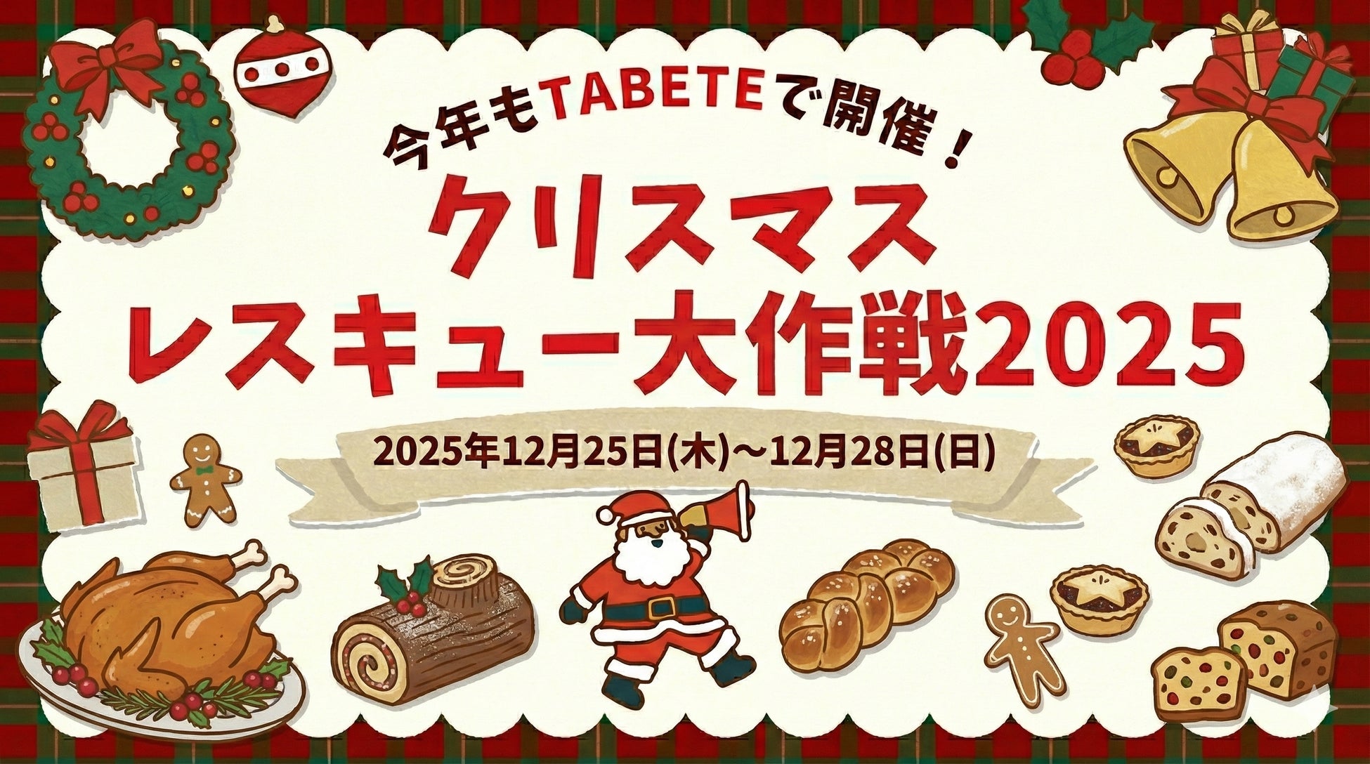 クリスマス後に発生する食品ロス削減をTABETEで推進するプロジェクト「クリスマスレスキュー大作戦2025」を、12/25(木)〜12/28(日)の4日間実施