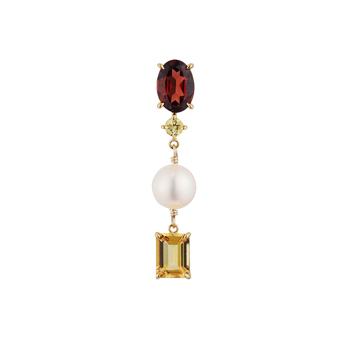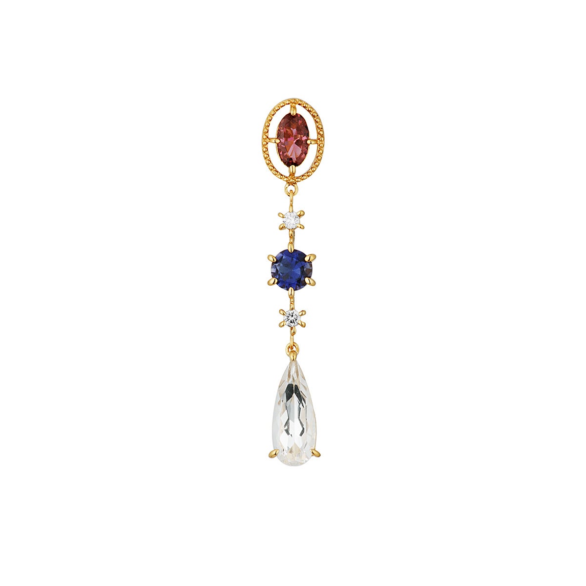 種類豊富なカラーストーンを、贅沢に組み合わせた全12型のピアスが登場。アメシストとローズクォーツのコンビネーションにレモンクォーツの繊細な煌めきを足した、移り変わる夜空のような美しい色合いのピアスや、ガーネットの魅惑的なカラーにパールをプラスした上品な印象のピアスなど、天然石の美しさを引き立てるリュクスなスタイルが揃っています。