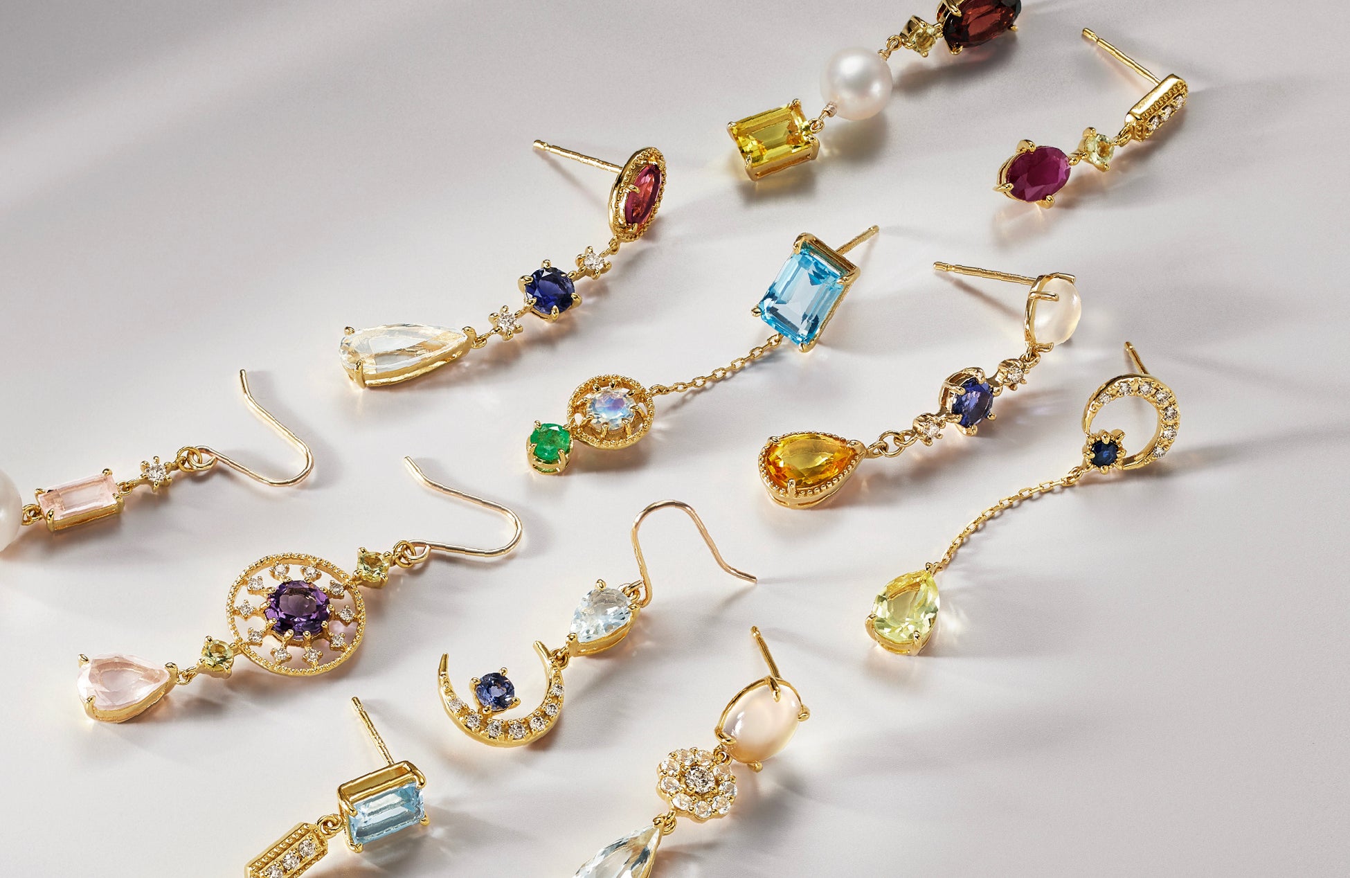 細かいディテールにこだわったエレガントなデザインに、色とりどりの華やかな輝きを上品に組み合わせたジュエリーは、特別な日の装いにもぴったりです。華やかなデザインで心をくすぐる豊富なラインナップから、あなたにぴったりのカラーを見つけてみては。