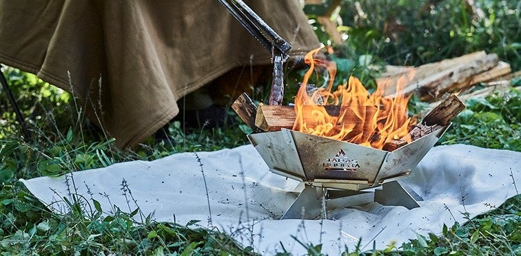 変形六角形のデザインをした低めの焚き火台です。ツヤのないステンレス素材を使用しており、武骨なキャンプスタイルにマッチするように仕上げました。