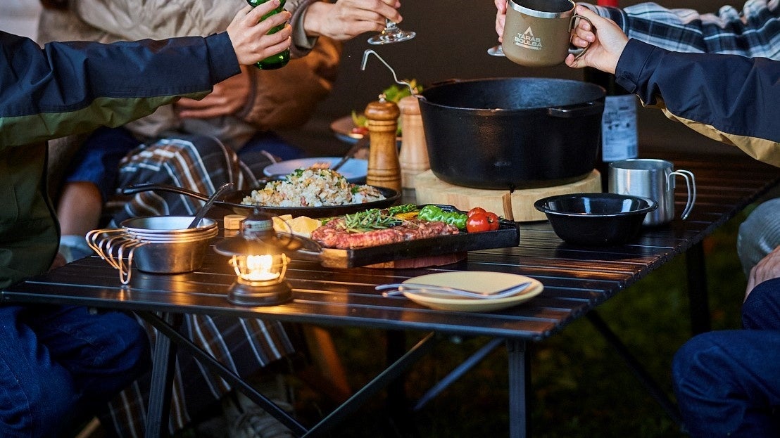 最大4人で使用できる折りたたみ式テーブルです。天板も脚もブラックに塗装しており、どんなキャンプ道具にも合わせやすいカラーに仕上げました。
