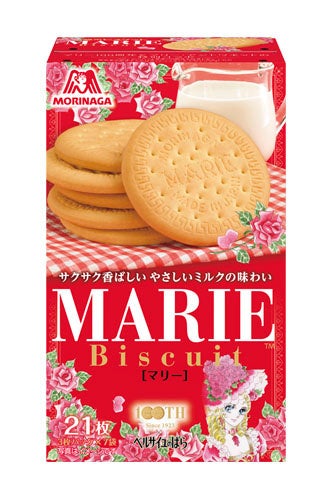1923年発売の「マリー」の商品名がマリー・アントワネットに由来することから、マリー・アントワネットが主人公として登場する「ベルサイユのばら」とコラボレーションしました。「ベルサイユのばら」のメインキャラクターである、マリー・アントワネットとオスカルをデザインし、美しく華やかな「ベルサイユのばら」の世界観を表現した、集めたくなるパッケージです。