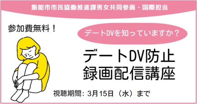 埼玉県飯能市は、デートDV防止録画配信講座を3月15日(水)まで動画配信をしています。
