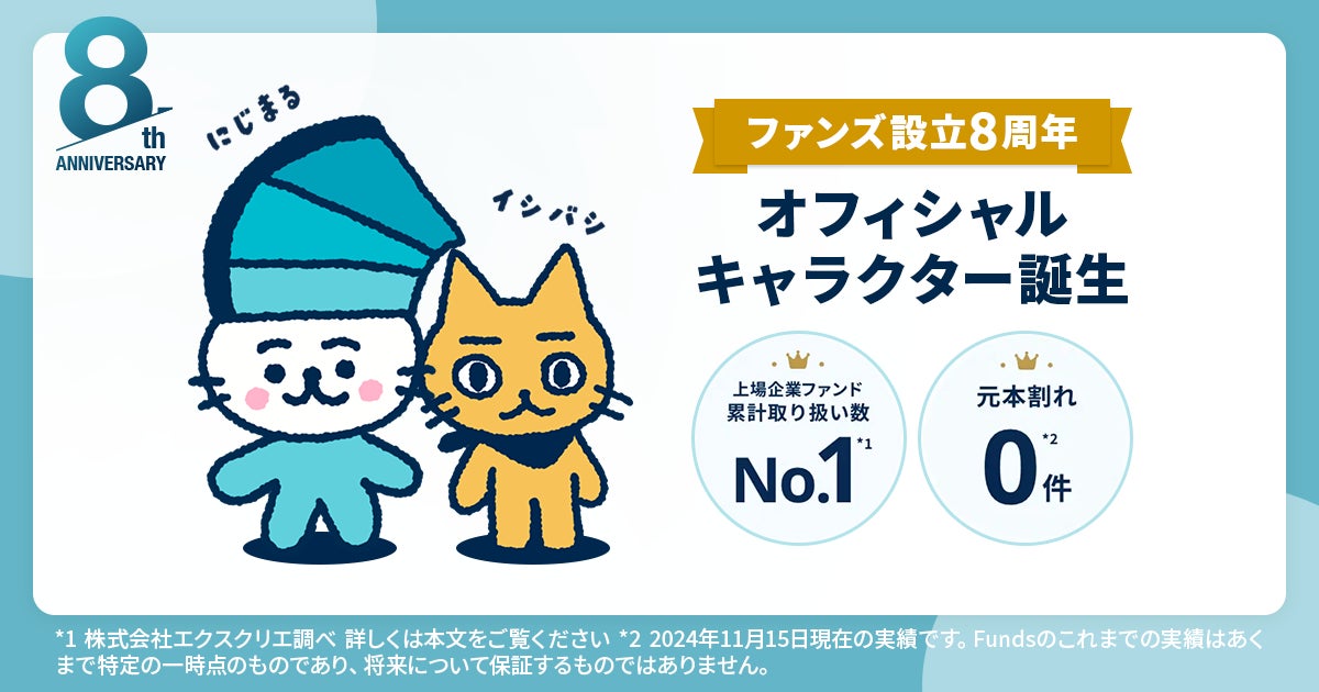 固定利回り投資の資産運用サービス「Funds(ファンズ)」を運営するファンズ株式会社(本社:東京都渋谷区、代表取締役CEO:藤田雄一郎、以下 当社)は、2024年11月1日で、2016年11月1日の会社設立から8周年を迎えたことをお知らせいたします。
