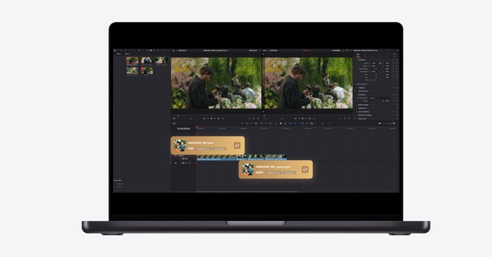 Vcoreはカメラのフレームレートとタイムコードを自動的に検出し、Premiere ProやDaVinci Resolveなどの編集ソフトウェアでシームレスなプロキシファイルのリンクを可能にします。