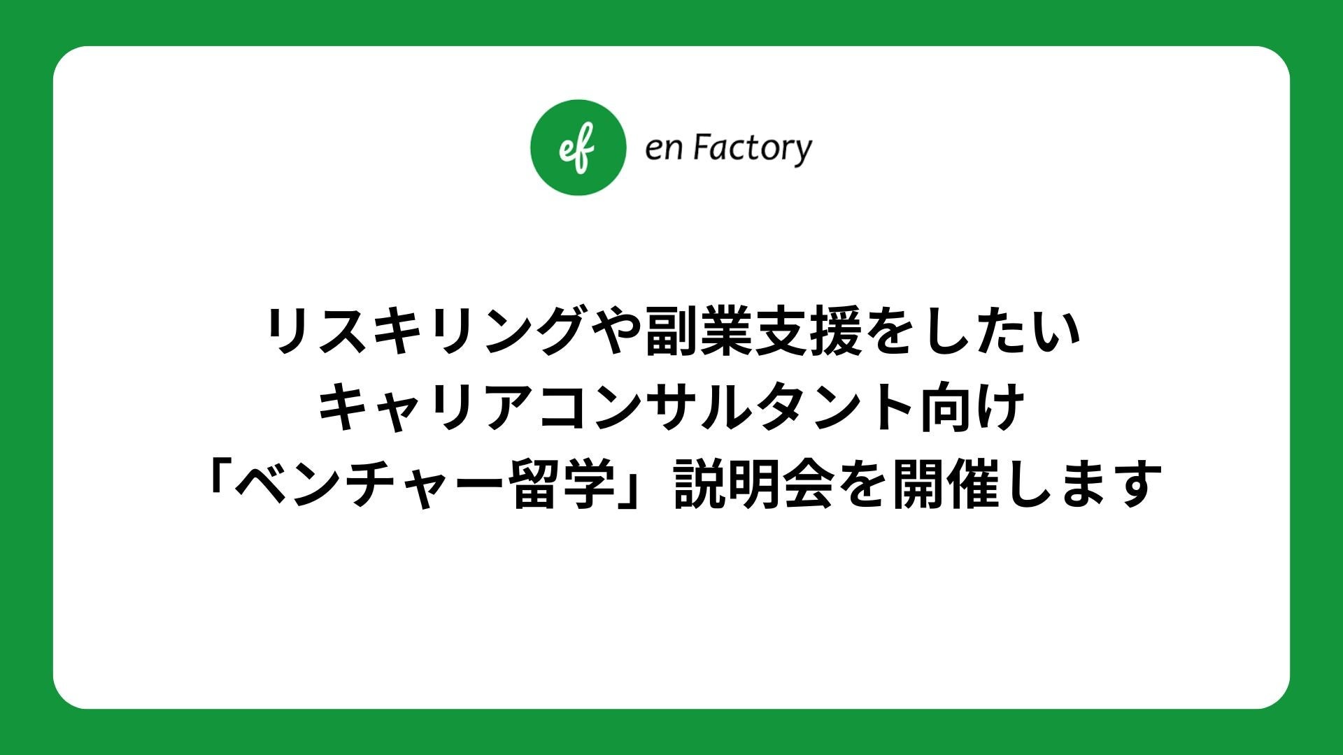 リスキリングや副業支援をしたいキャリアコンサルタント向け「ベンチャー留学」説明会を開催します
