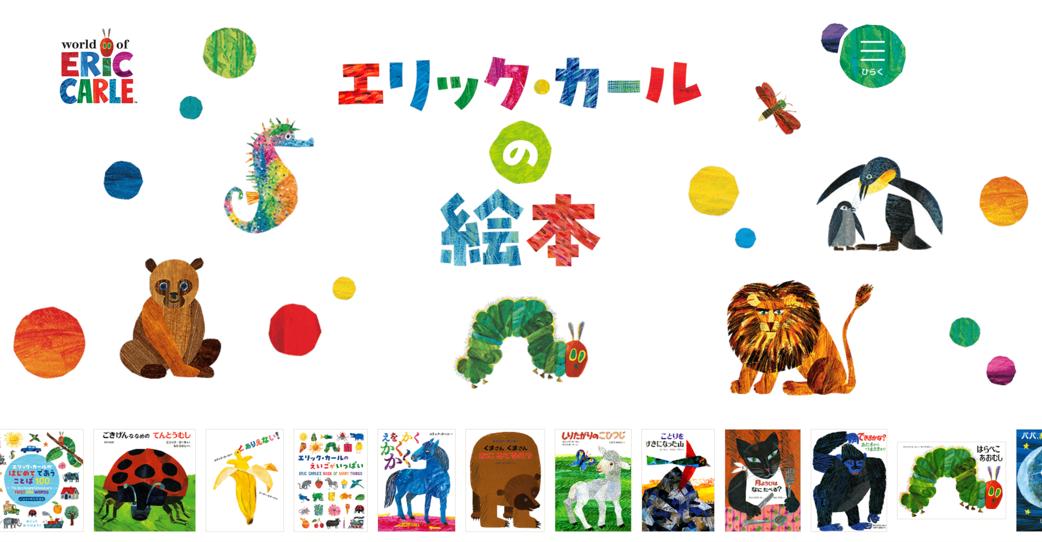 エリック・カール作品の魅力を伝えるスペシャルサイトを、『はらぺこあおむし』50周年を記念してリニューアルしました。