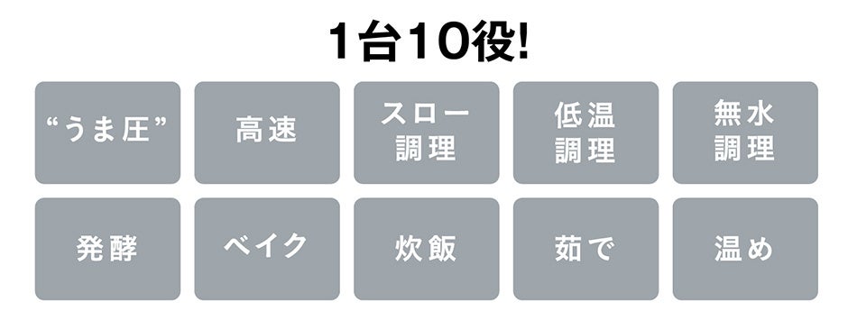 一般的な電気圧力鍋は、1.7気圧以上の高圧力を採用していますが、本製品は、約1.15気圧のやさしい圧力「うま圧」メニューを搭載。ジャー炊飯器で培った熱コントロール技術で、食材の食感を活かし、栄養素を逃しにくい独自のおいしい圧力を採用しています。