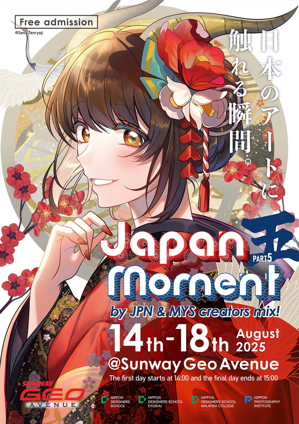 本展示は、学校法人呉学園のグローバル・プロジェクト「Japan Moment Part5」に合わせたもの。日本のクリエイティブのいま(=Moment)を世界に発信することをビジョンを掲げた「Japan Moment」では、マレーシア初の日本カレッジである⽇本デザイナー学院マレーシア校、姉妹校である専門学校日本デザイナー学院(東京)、日本写真芸術専門学校(東京)、専門学校日本デザイナー学院九州校(福岡)の共同開催により、本校卒業生を中心としたプロのクリエイター作品や、各校の優れた学生作品を展示予定です。