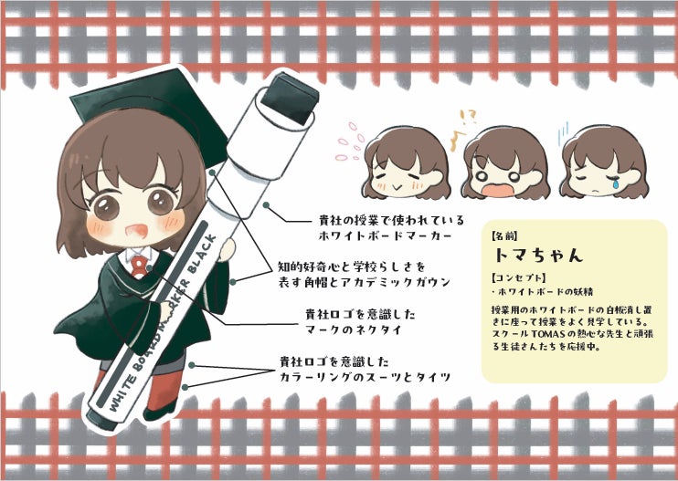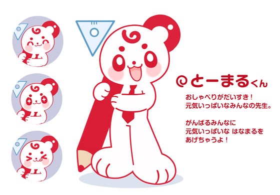勉強に使用する文具の中で、よく目にする赤ペンとスクールTOMASロゴマークから着想を得て、赤く、ペンギンがモチーフのキャラクターを考えました。