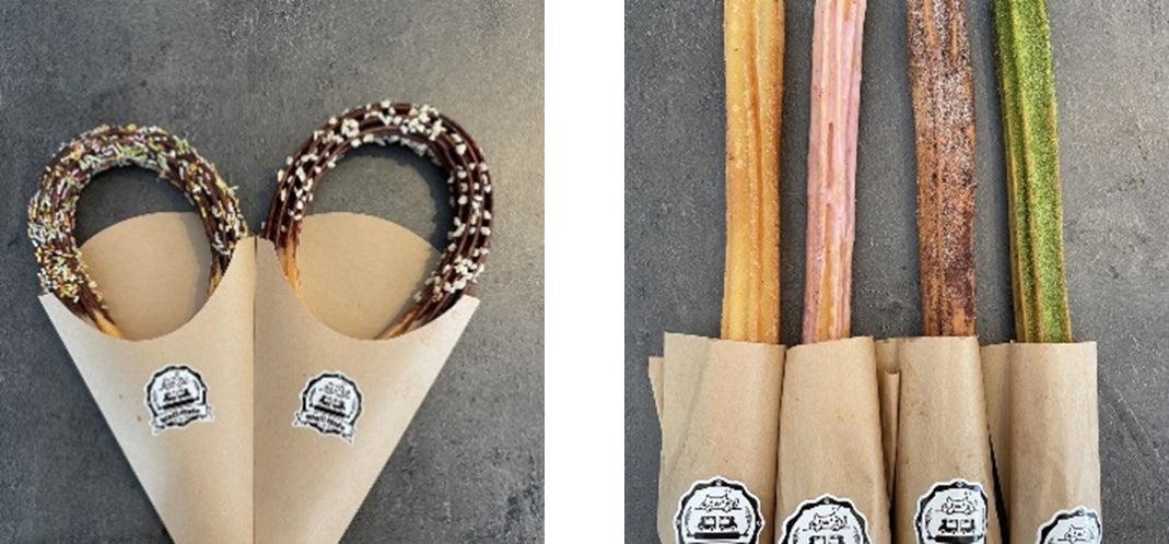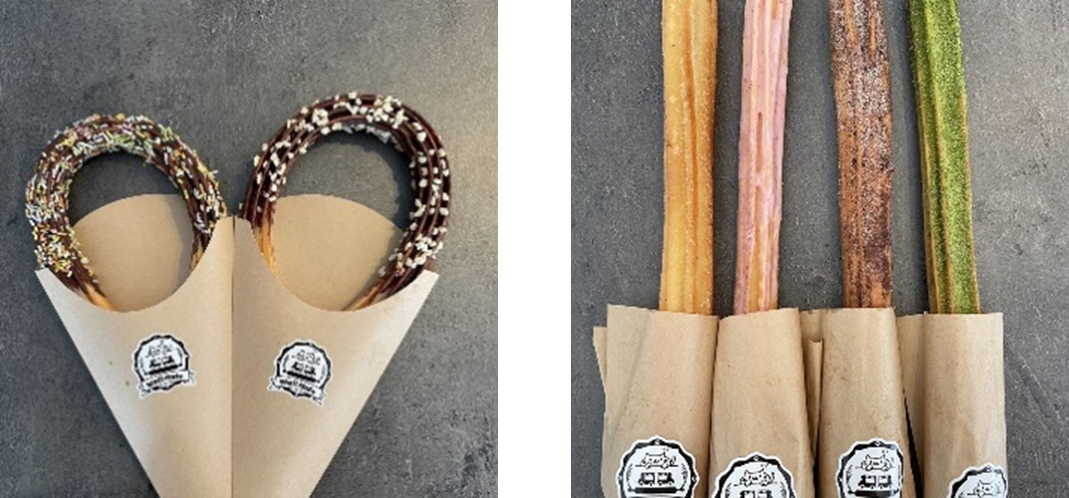 看板メニューの米粉100%チュロスはカリカリもちもち食感をお楽しみいただけます。