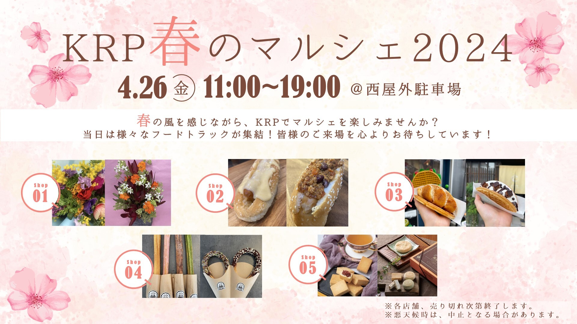 お花やスイーツの移動販売車が出店!4月26日「KRP春のマルシェ2024」を開催します