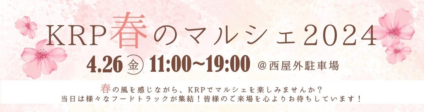 KRPは、ツドイStreet3周年記念企画として「KRP春のマルシェ2024」を4月26日(金)の1日限定で開催します。本マルシェでは、KRP地区初出店となるtistouさまによるお花の販売や、Well Cafeさまによるチュロスの販売のほか、スイーツや軽食メニュー、ドリンクを販売いただきます。