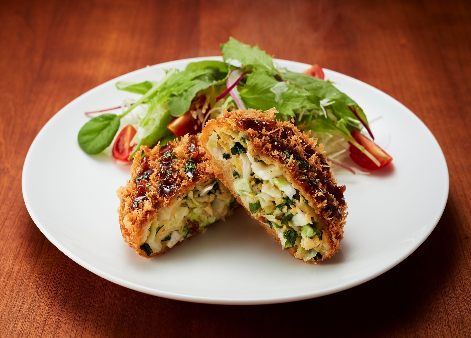 野菜の甘みが口の中に広がる、ふわふわ食感がたまらない人気のカツ。期間限定で春の七草を合わせ、季節ならではの素材と風味が味わえます。