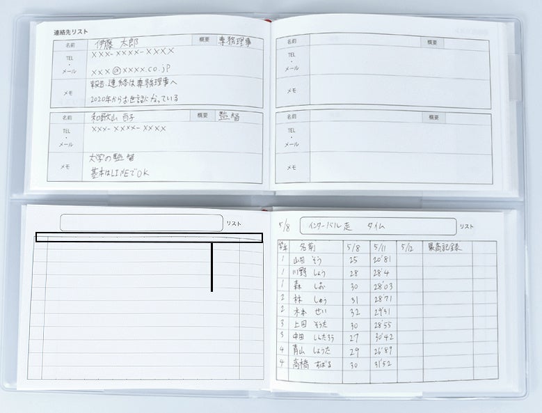 3.部活生ならではのTODOや必要リストを一目で確認できる(上巻は連絡先リスト 下巻はTODOリスト。自分で仕切り線を入れカスタマイズできる)