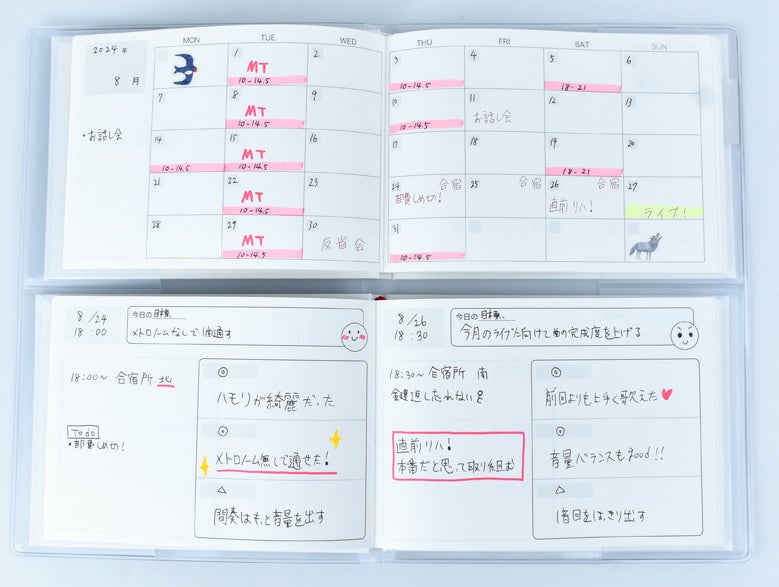 2冊の手帳の上段・下段は異なるレイアウト配置を採用しており、これによりやるべき事を俯瞰して確認できる画期的な仕様となりました。