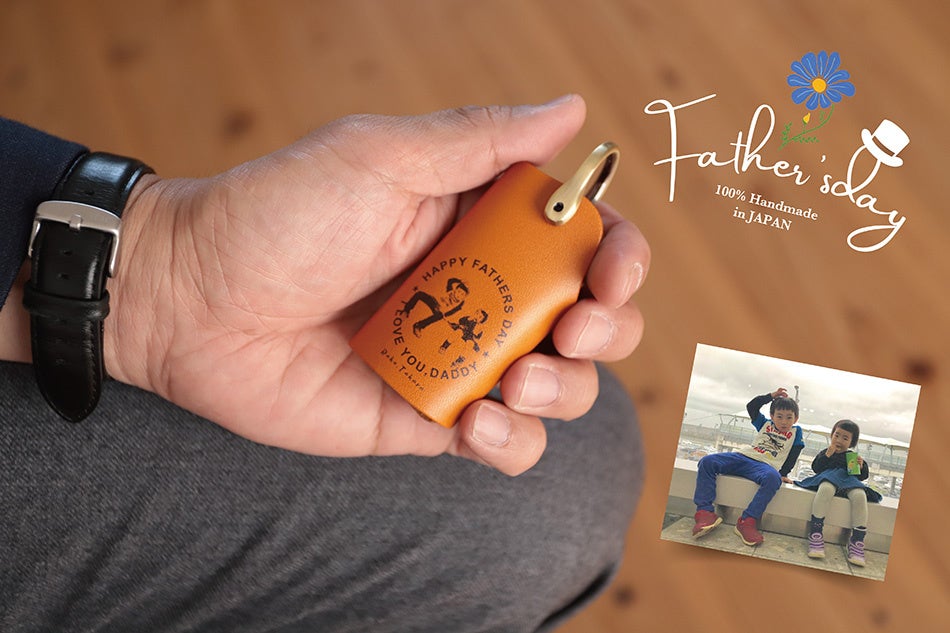 子どもの写真や絵が本革キーケースに!世界でひとつだけの父の日ギフトを革職人がハンドメイド。6月1日まで「父の日割」1000円OFFキャンペーンを開催。