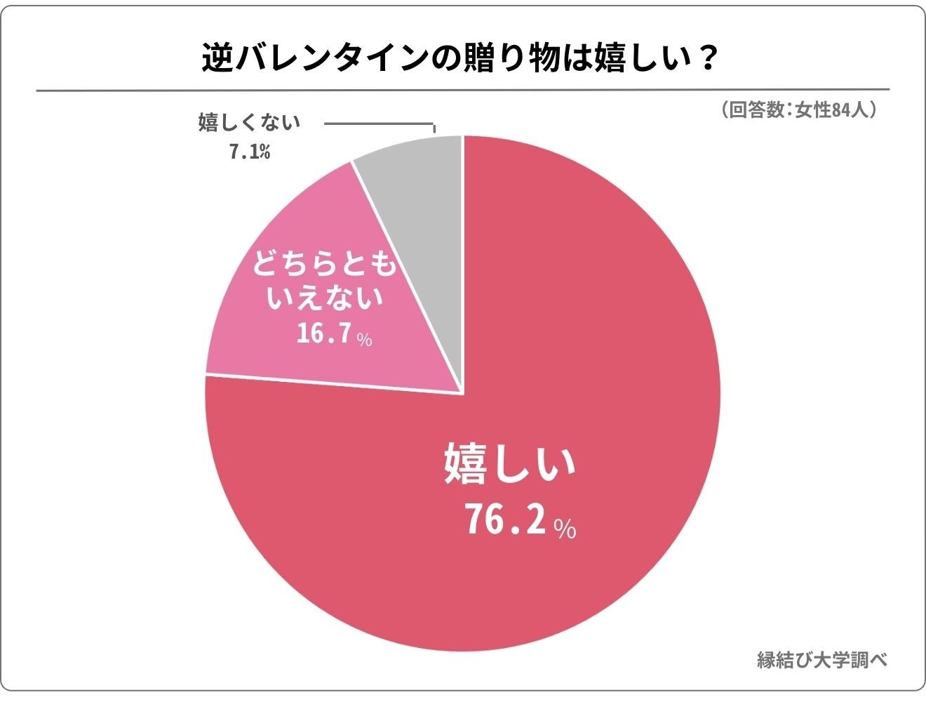 『縁結び大学』では、20~30代の独身女性220人に、男性から女性にチョコレートやギフトを贈る「逆バレンタイン」についての本音やもらってうれしいプレゼントを調査しました。さらに、199人の独身男性には、逆バレンタインで贈り物をした経験について聞き、逆バレンタインの成功率に迫ります。