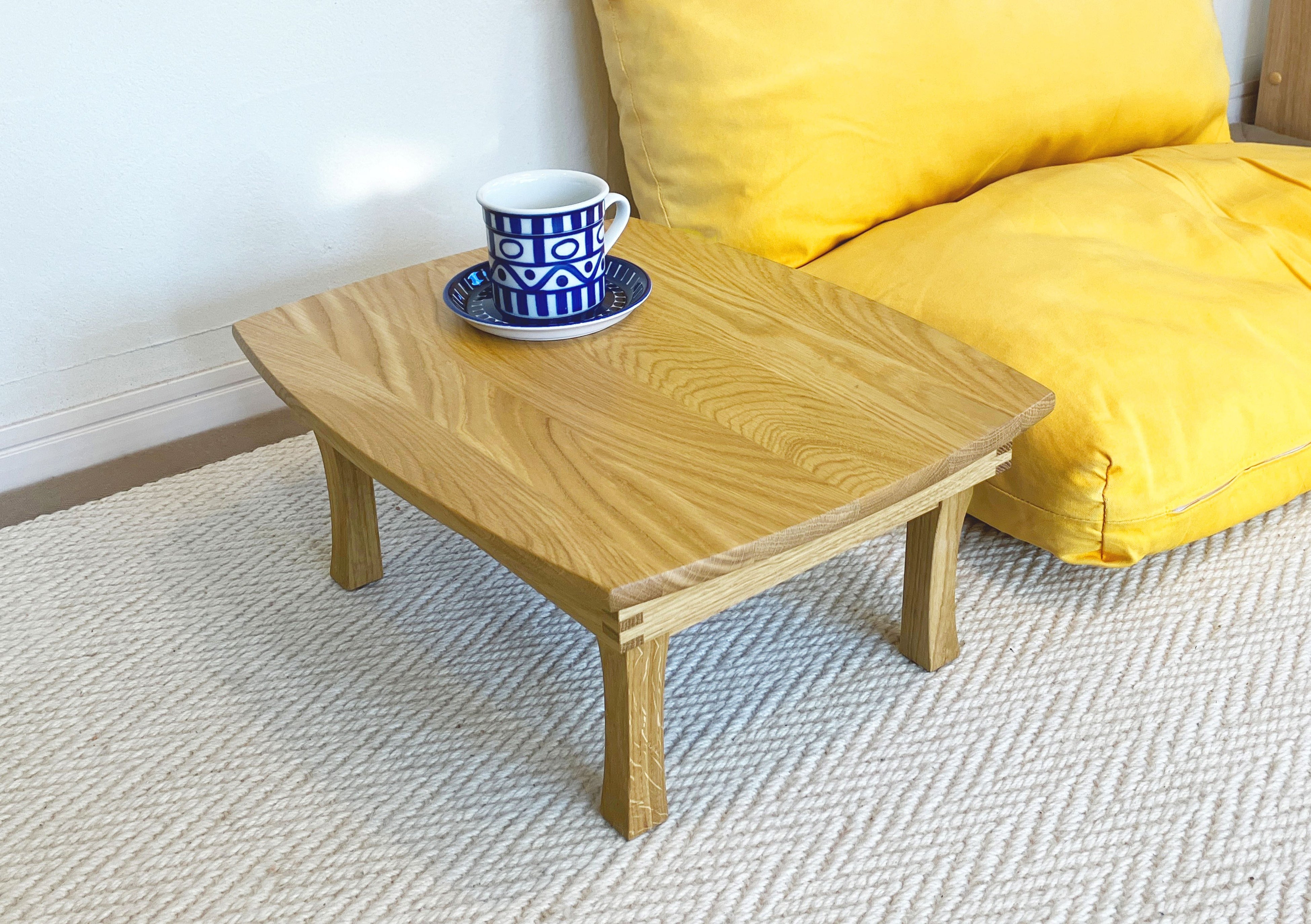 高い木工技術を誇るスロベニアで製作された、釘不使用の指物(ちゃぶ台)を展示。昔懐かしい猫足のデザインはそのままに、美しく頑強な木組みで再現したちゃぶ台は、和風、洋風どちらのフロアにも馴染みます。