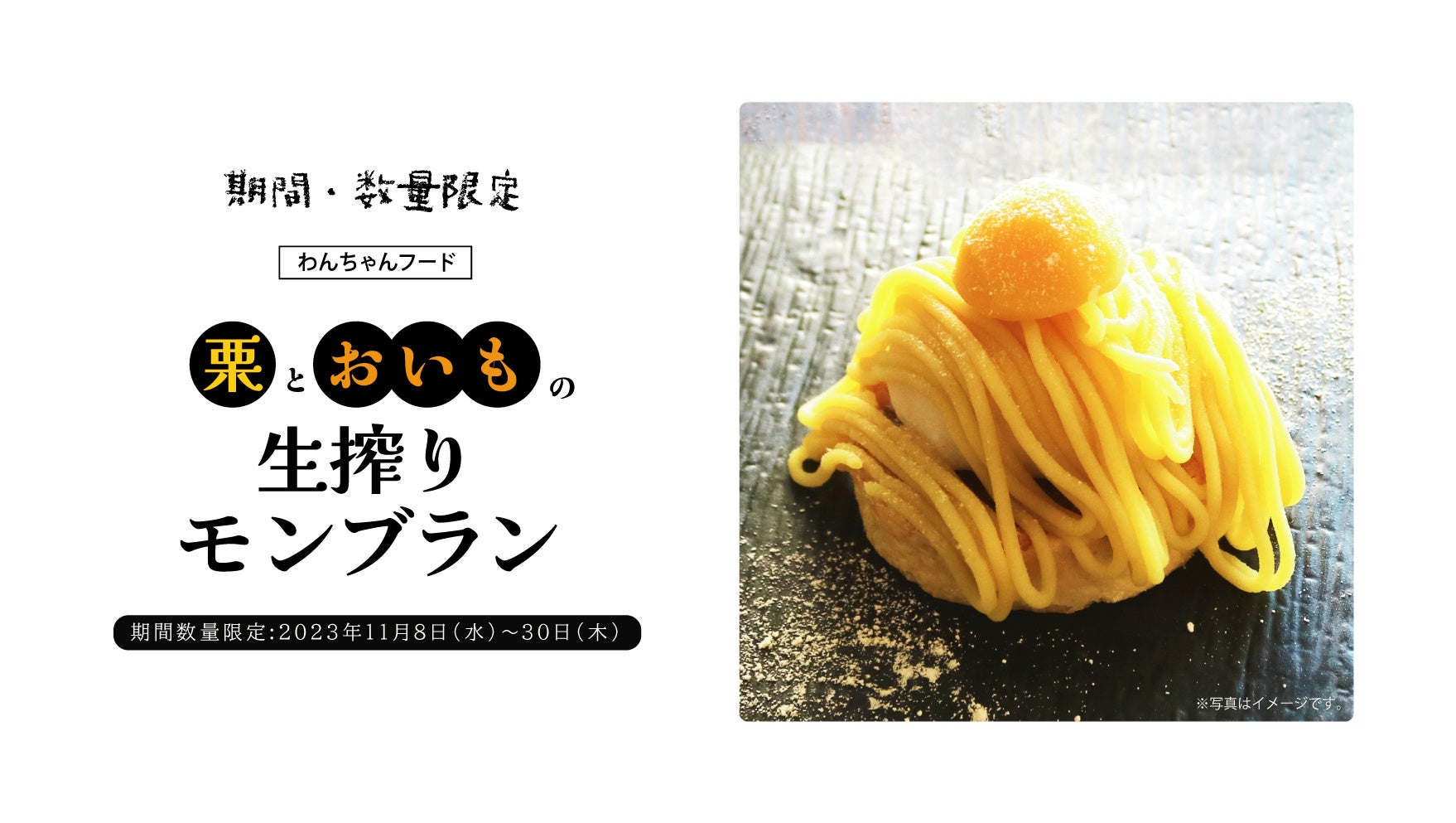 数量限定わんちゃんフード 「栗とおいもの生搾りモンブラン」発売!