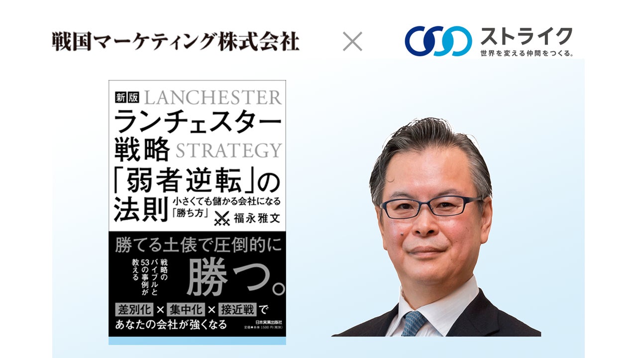 M&A 仲介の株式会社ストライク(本社:東京都千代田区、代表取締役社長:荒井邦彦、以下、当社)は、ランチェスター戦略を活かした経営コンサルティングを提供する戦国マーケティング株式会社(所在地:東京都千代田区、代表取締役社長:福永雅文、以下、戦国マーケティング)と、M&A業務に関するパートナーシップを締結したことをお知らせいたします。