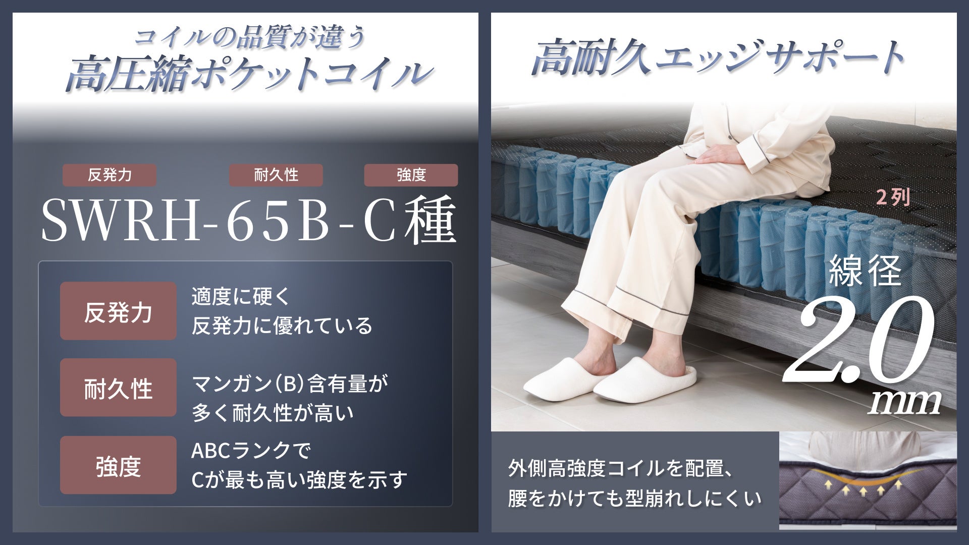 【2層ウレタン×高密度ポケットコイルの体圧分散設計】