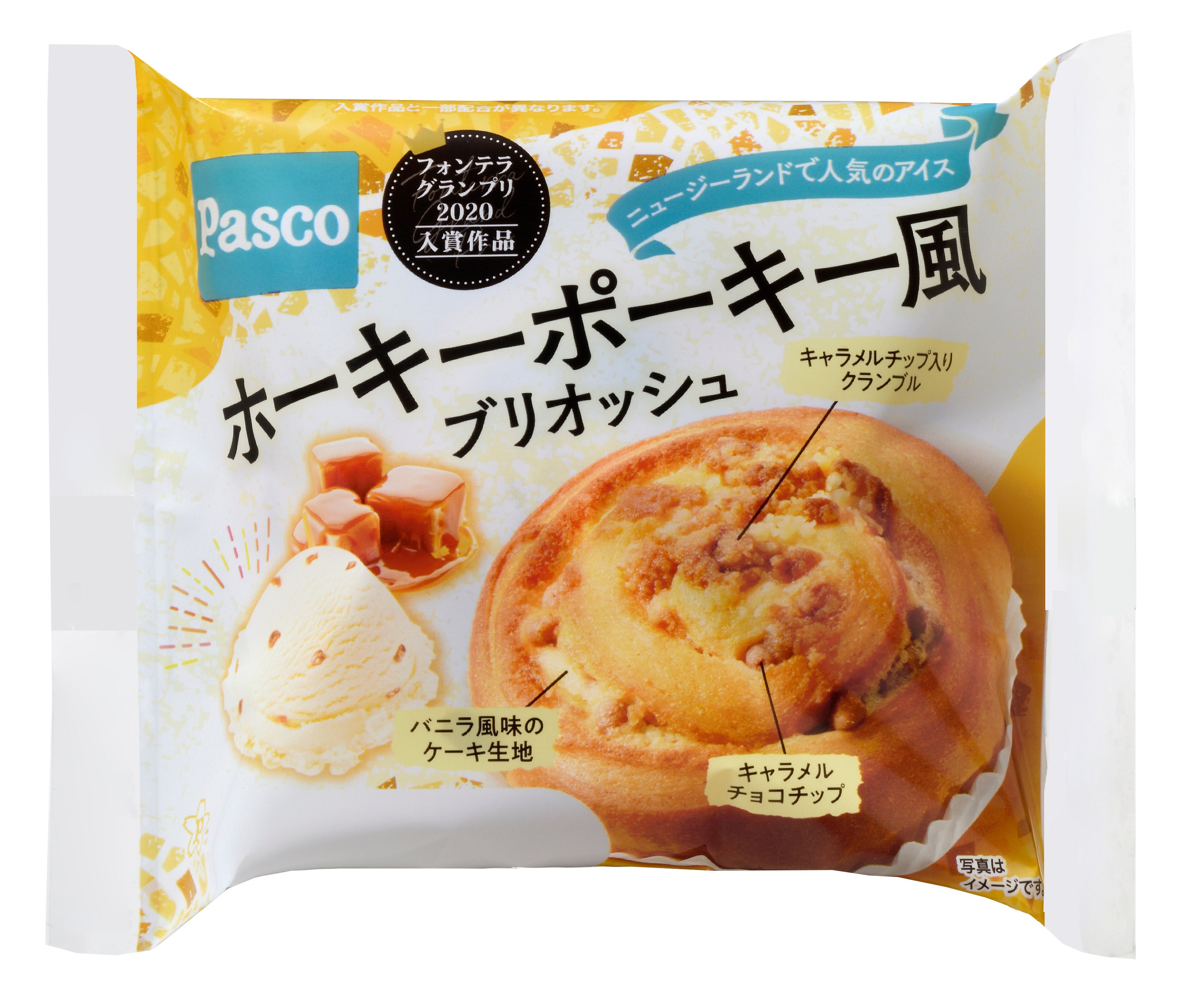 「ホーキーポーキー風ブリオッシュ」は、ニュージーランドで人気のアイス「ホーキーポーキー」(※)をイメージした商品で、ブリオッシュ生地にキャラメルチョコチップとバニラ風味のケーキ生地を巻き込み、キャラメルチップ入りクランブルをトッピングして焼き上げました。