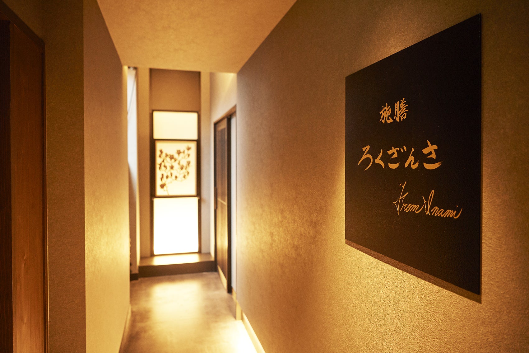 カウンター10席のみの完全予約制の和食店です。特徴的な木のカウンターは井波エリアの名家の庭にあった樹齢250年の檜を地元の材木会社から特別にご提供いただき使用しています。また、井波発の伝統工芸品のレンタルサービス「TRADAILY(トラデリー)」を活用し、井波彫刻を店舗の光壁に展示。半年ごとに作品が入れ替わり、お客様をお迎えします。