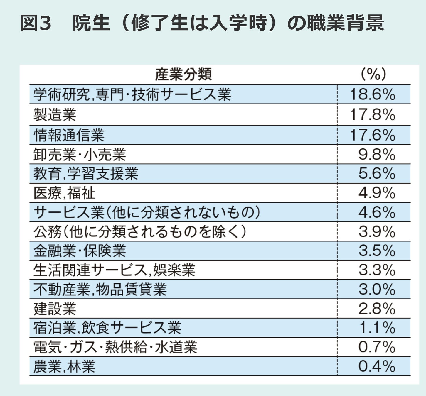 ■社会人大学院の特長として、幅広い業種業界から多様なバックグラウンドを持つ院生