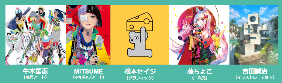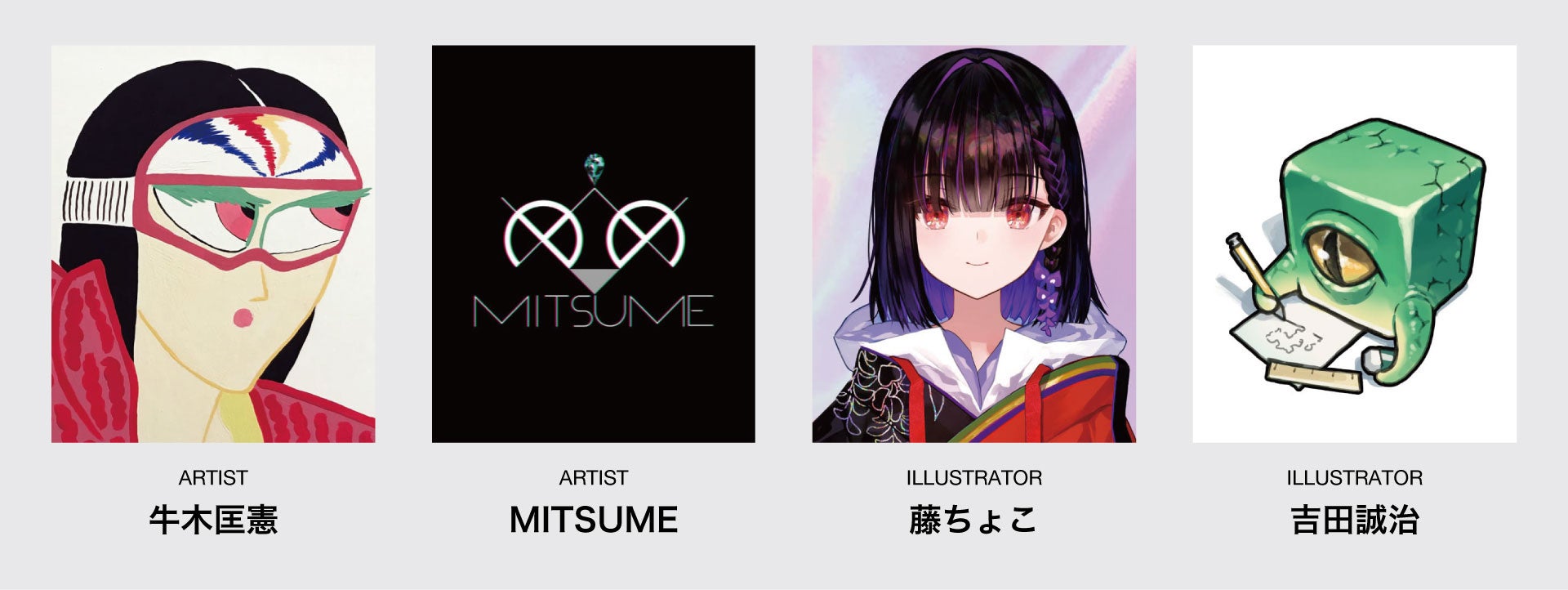 審査員は、牛木匡憲、MITSUME、藤ちょこ、吉田誠治といった、各方面で第一線を走るアーティストです。海外で活躍するポップアーティストから、若者に絶大な人気を誇るイラストレーターまで様々なジャンルのアーティストが審査し、それぞれ賞を授与することで、幅広いジャンルの作品を迎え入れることを狙いとしております。