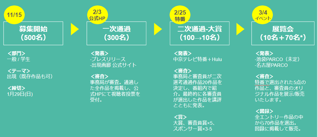 「出現画廊 其ノ参」来年3月開催決定!豪華審査員が新時代のクリエイターを選ぶアワード「出現画会」のエントリー開始
