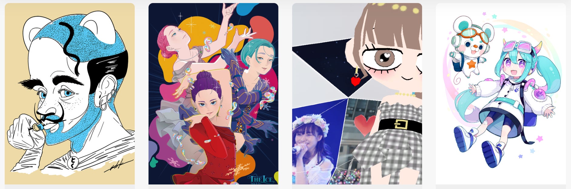 過去にご参加いただいたクリエイターの皆様とは、オリンピックアスリートとのコラボアート販売や、テレビ番組のオリジナルキャラクターデザイン、人気アイドルのオリジナルアバターデザインなど、多種多様な取り組みを実施して参りました。