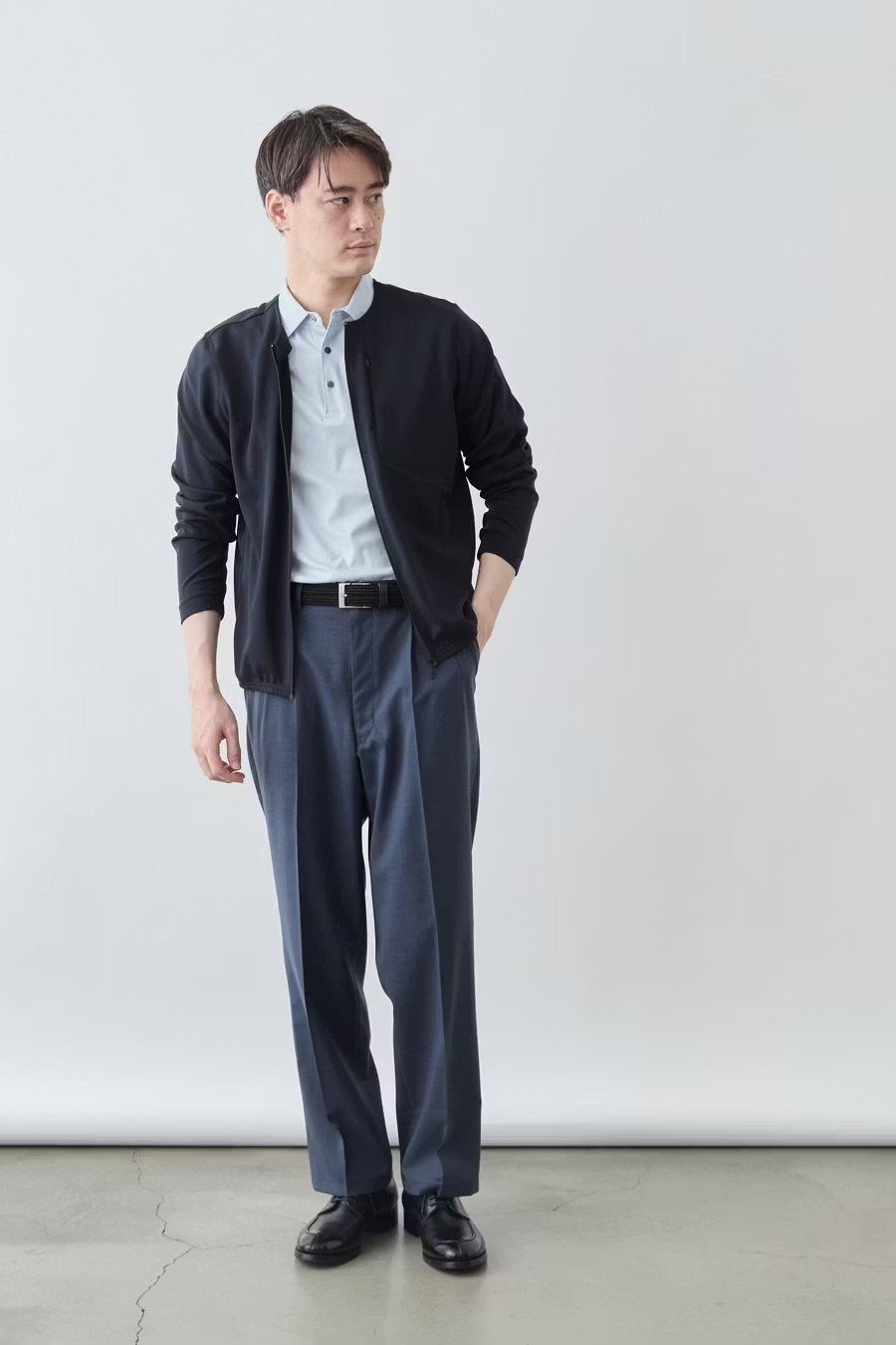 リラックス感はありつつも、襟の立ち方や生地のハリが大人のカジュアルを保ってくれます。
