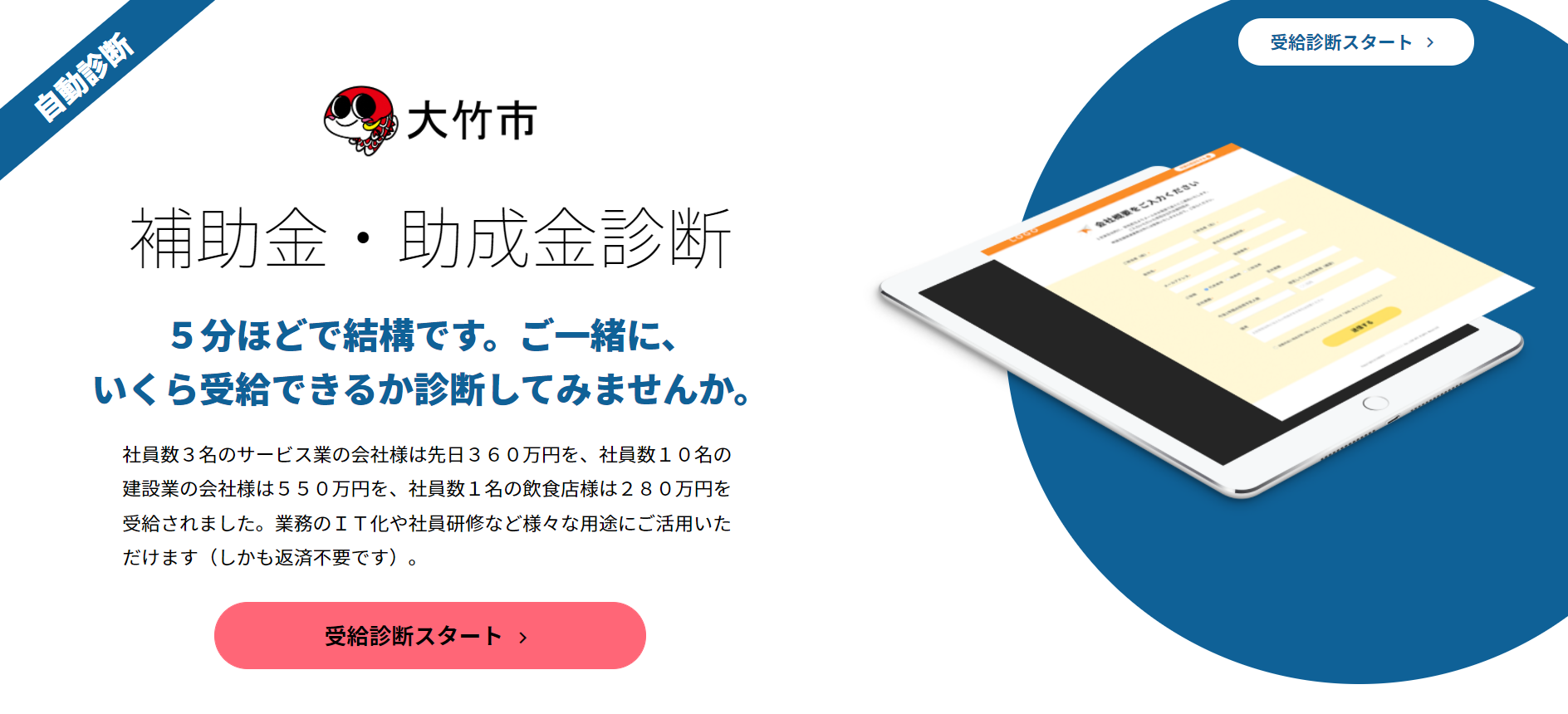 【ご報告】ライトアップ、11自治体目となる広島県大竹市へ、助成金自動診断システム「Jシステム」のOEM提供を開始