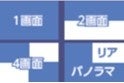 フロント用360°撮影対応カメラに、1画面(前方、車内、リアカメラ、左、右)、2画面(前方/リアカメラ)、4画面(前方/左/右/リアカメラ)、パノラマ(パノラマ/リアカメラ)の4種類の画面表示モードを搭載。本機で録画した映像をフロントカメラの液晶画面で確認する際、各モードに切り替えて表示することができます。