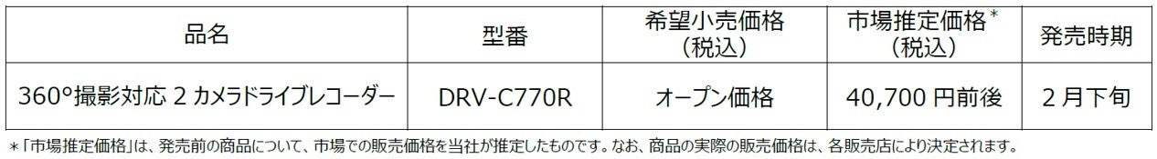 360°撮影対応2カメラドライブレコーダー「DRV-C770R」を発売