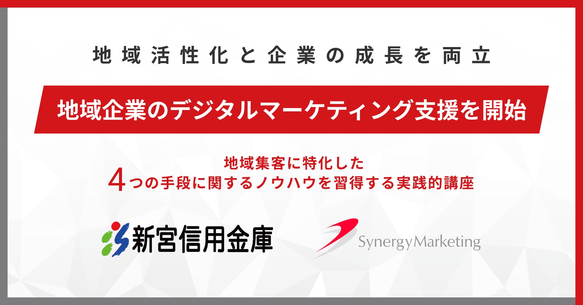 シナジーマーケティング株式会社(所在地:大阪市北区、代表:奥平 博史、以下:当社)は、新宮信用金庫(本店:和歌山県新宮市、理事長:浦木 睦雄)と連携し、2025年2月から、地域企業のデジタルマーケティング支援プロジェクトを開始しました。本プロジェクトでは、新宮信用金庫の取引先企業を対象に、地域集客に特化した4つのデジタルマーケティング施策に関する実践的な講座を提供します。これにより、地域企業の集客力向上と地域経済の活性化に貢献することを目指します。